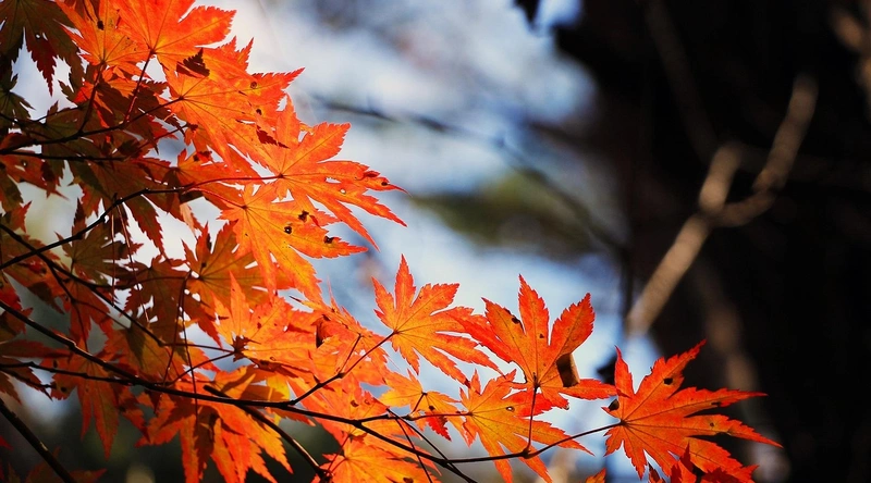 - 가을철 붉게 물든 단풍과 청명한 하늘