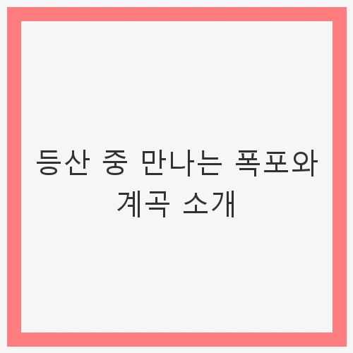 등산은 자연을 만끽하며 건강을 챙길 수 있는 완벽한 방법입니다. 특히, 등산 중에 만나는 폭포와 계곡은 그 자체로도 매력적인 경관을 이루며, 우리에게 자연의 신비로움을 느끼게 합니다. 오늘은 특히 아름다운 폭포와 계곡을 품고 있는 등산 코스를 소개하고자 합니다. 이곳은 초보자부터 숙련된 등산객까지 누구나 즐길 수 있는 다양한 경로와 아름다운 풍경을 제공합니다.